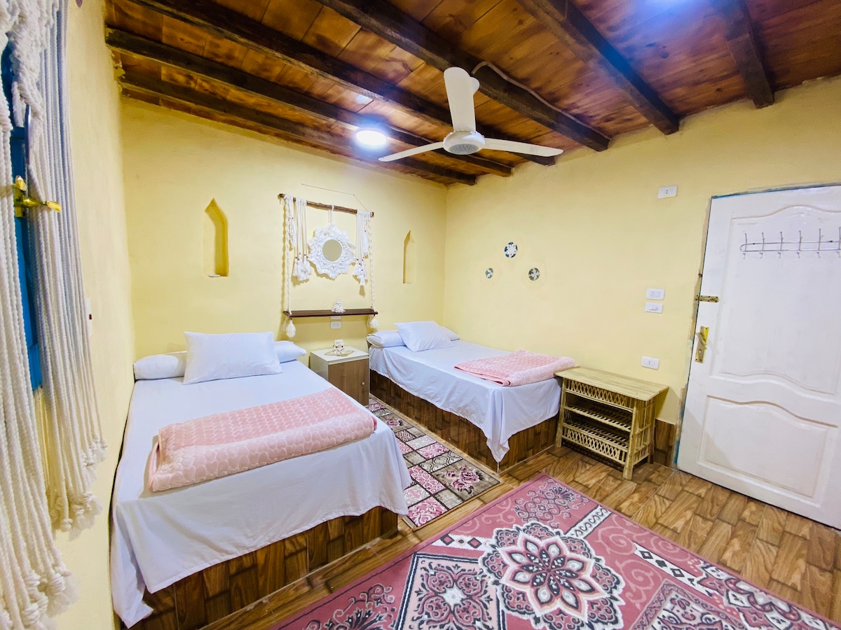 Beit Ain al Haya este o casă veche, tradițională, cu tavane înalte, cupole și arcade. De pe acoperiș aveți vedere la lacul Quarun și la deșert. Unitatea mare a acestei case are un acoperiș uimitor de mare și acces la grădină. În dormitor aveți un pat de 1,60m și o canapea suplimentară și un șemineu. În recepția imensă 2 persoane suplimentare pot dormi pe canapele confortabile. Casa este dotată cu WiFi și mese de lucru, furgonete și încălzitor. Parcare în interiorul proprietății.