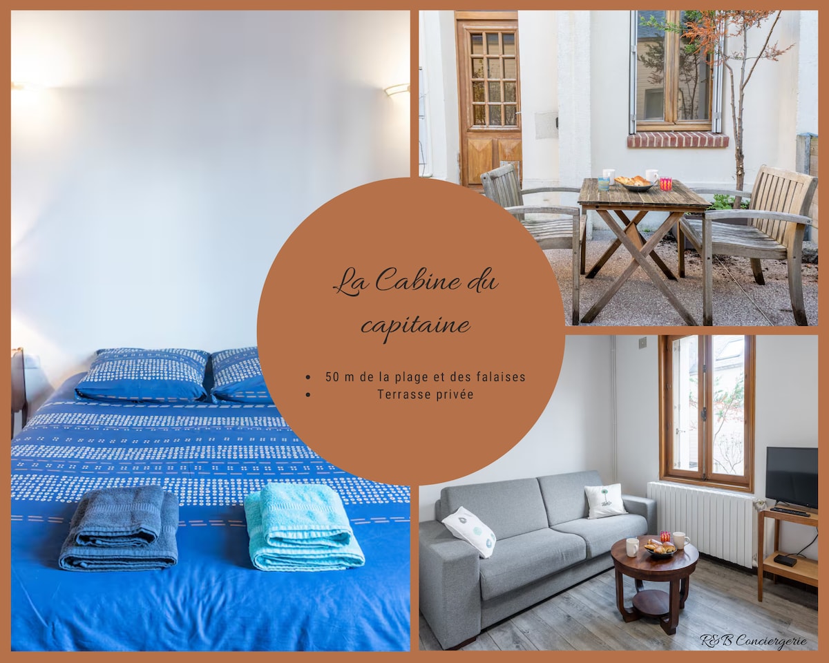 Découvrez La Cabine du capitaine, idéalement situé à seulement 50 mètres de la plage d'Etretat. A l'étage, vous profiterez d'une chambre avec lit double. La salle de bain, également à l'étage, complète cet espace nuit. Au rez-de-chaussée, la kitchenette parfaitement équipée vous permettra de prendre vos repas en toute simplicité. Pour votre arrivée, nous vous offrons thés et cafés.