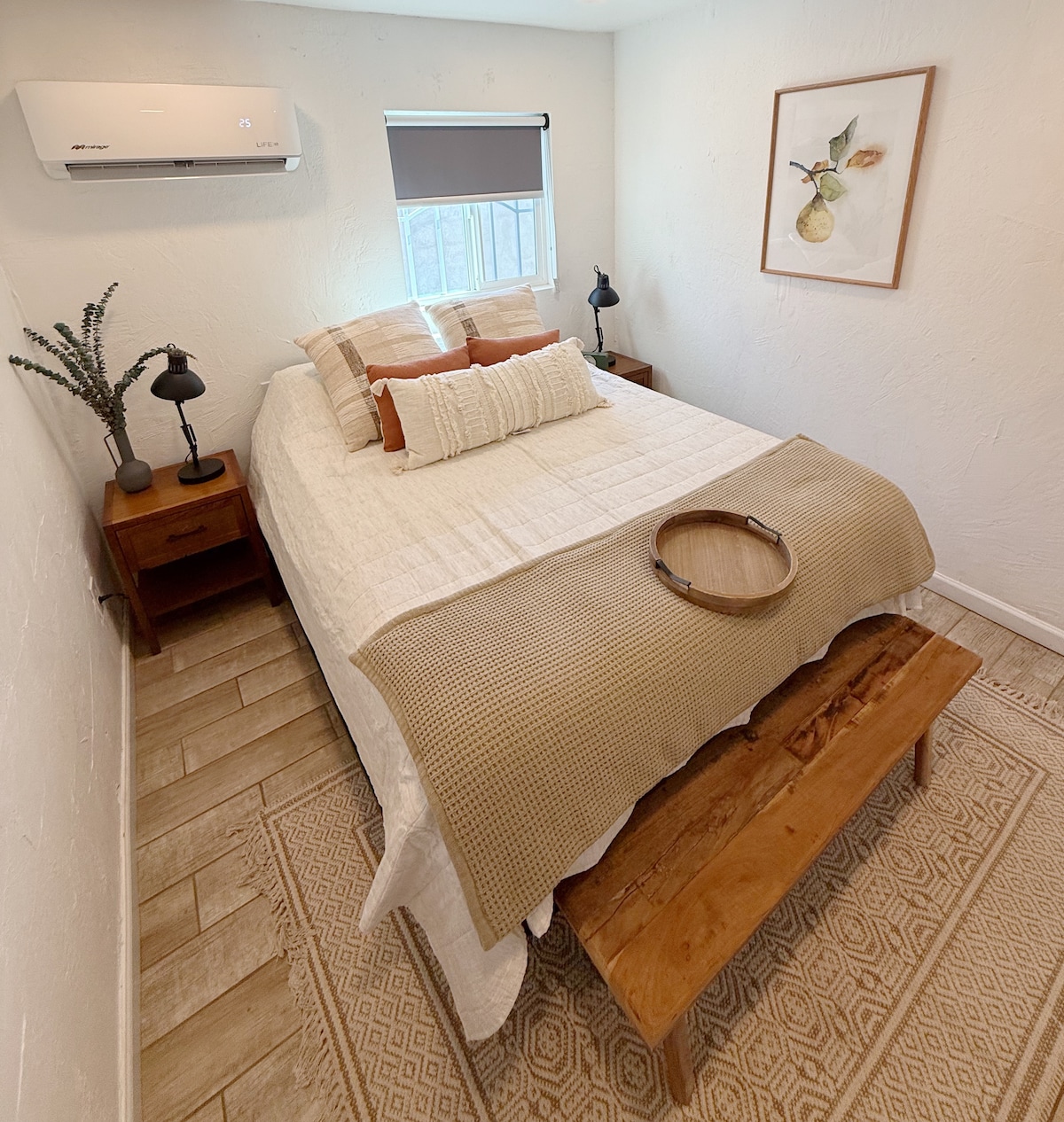 Ședere plăcută în Yuma în acest studio artistic și frumos. Poate găzdui până la 4 oaspeți într-un pat matrimonial confortabil și o saltea pneumatică. Baie completă, bucătărie spațioasă cu toate ustensilele. Ne aflăm la 5 minute de Spitalul Onvida, la 10 minute de centrul comercial Yuma Palms și de aeroport, la câțiva pași de restaurante, cafenele și supermarketuri. Mașină de spălat și uscător automat de rufe disponibile oaspeților.