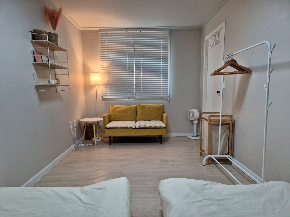 Stay 휴식 #방3#침대5#친구모임#단독주택#전용주차공간#가족모임#장박#세탁기#건조기