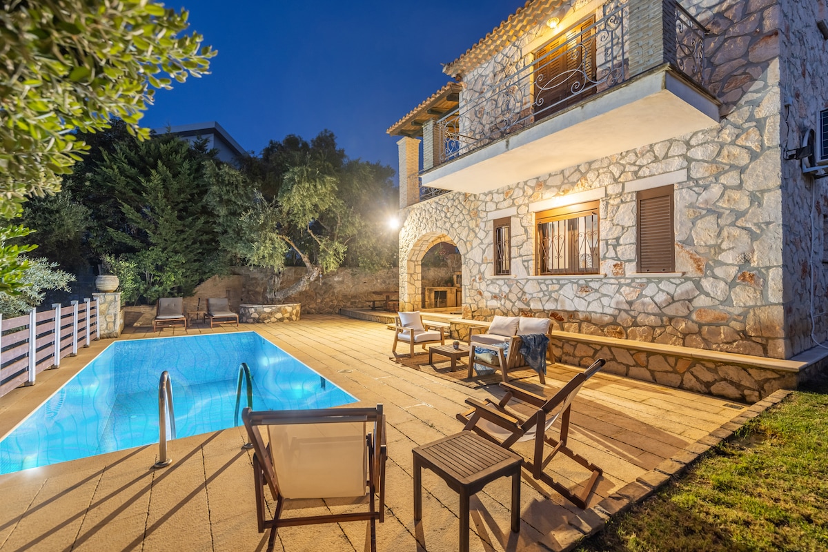 Vilele tradiționale din piatră, Orfos Villas, au patru vile care pot găzdui 4-6 persoane. Vila JOGIA oferă o piscină privată și este complet echipată pentru a-ți satisface orice nevoie. Vila a fost decorată cu atenție, cu o seriozitate bogată pentru detalii, folosind mobilier realizat manual și tradițional, pentru a oferi un stil unic și un standard ridicat de confort. Situat în Agios Nikolaοs în Volimes, una dintre cele mai idilice locații ale insulei și oferă priveliști magice asupra apelor cristaline ale Mării Ionice.