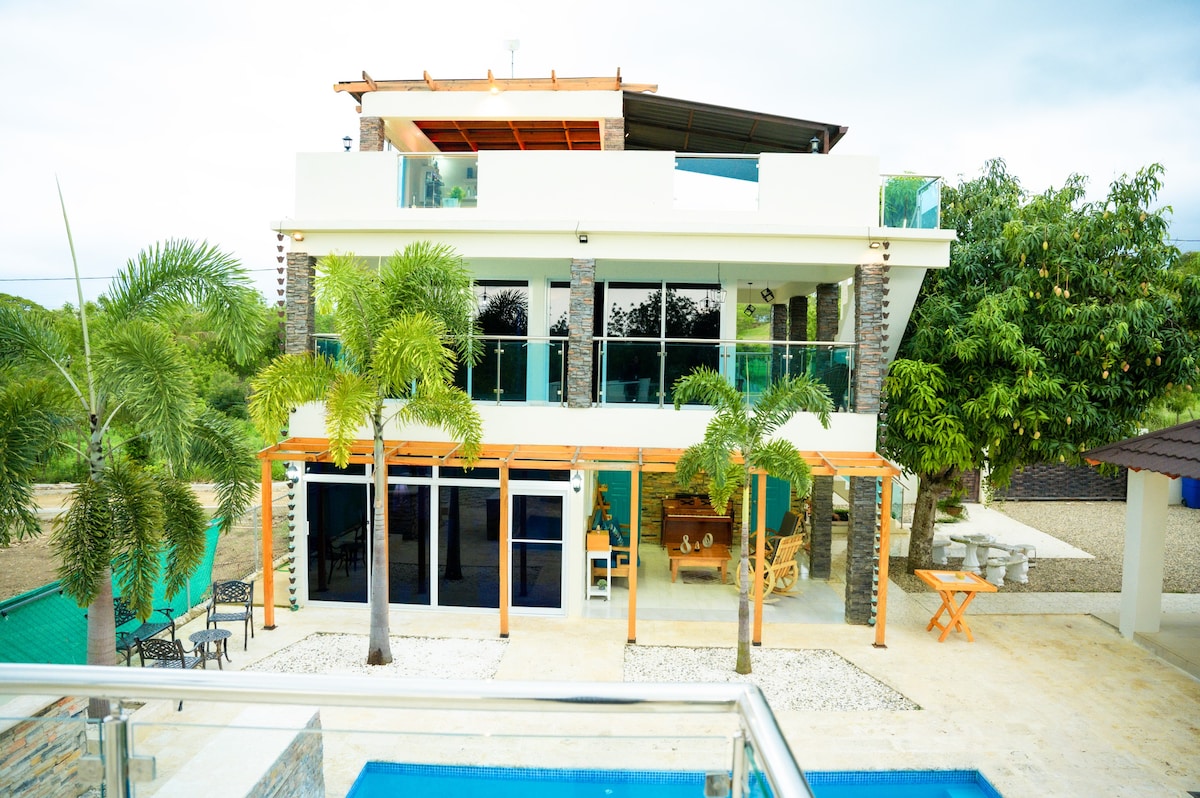 Plan your stay at Villa Mi Sol! Only 40 minutes from Santiago and Cibao Airport. Enjoy boho-luxe comfort with a heated cascading pool, BBQ, wood-fire stove, gazebo, hammock, and outdoor terrace, in a spacious, sunflower-infused getaway! We offer endless services such as group excursions on ATVs or jet skis, daily meal discounts, car rental, airport/destination transportation for the entire family, and birthday/special occasion bedroom decoration service for your loved ones to enjoy on arrival.