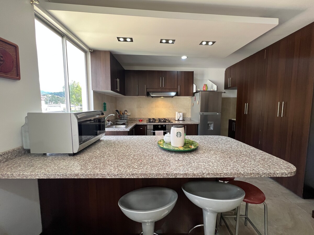 Călătorești în scopuri de afaceri? sau ai nevoie doar ca întreaga familie/prieteni să fie online, întotdeauna? Acest spațiu modern te acoperă! Bucură-te de INTERNET prin fibră optică de mare viteză (20 Mbps). Apartamentul este situat lângă râul „Orillas del Zamora” într-o clădire privată, ceea ce este minunat dacă apreciezi siguranța. Este situat la etajul 4, care oferă o priveliște remarcabilă asupra râului, orașului și munților. Strada principală din Loja pentru restaurante și baruri „24 de Mayo” este la 3 minute (distanță de mers pe jos)