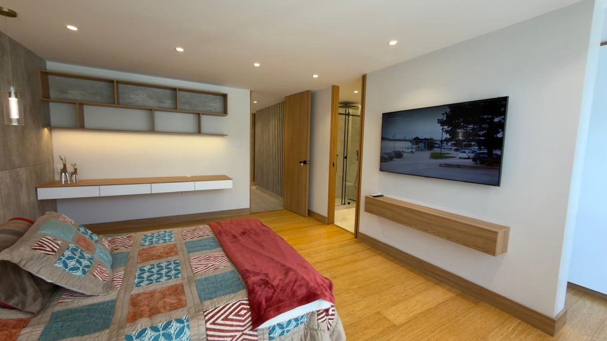 Vive Loja de sus cu confort inteligent Bucură-te de o experiență modernă și confortabilă în acest loft elegant cu domotică Alexa, situat în inima orașului Loja, la doar câteva minute de centrul istoric și înconjurat de cultură, gastronomie și natură. Alexa : Aprinde luminile, redă muzică, memento-uri sau controlează televizorul numai cu vocea. Vedere panoramică Wi-Fi: 350 Mbps Parcare privată gratuită (numai pe timp de noapte) Venituri independente și asigurare non-stop Animale de companie mici cu preaviz.