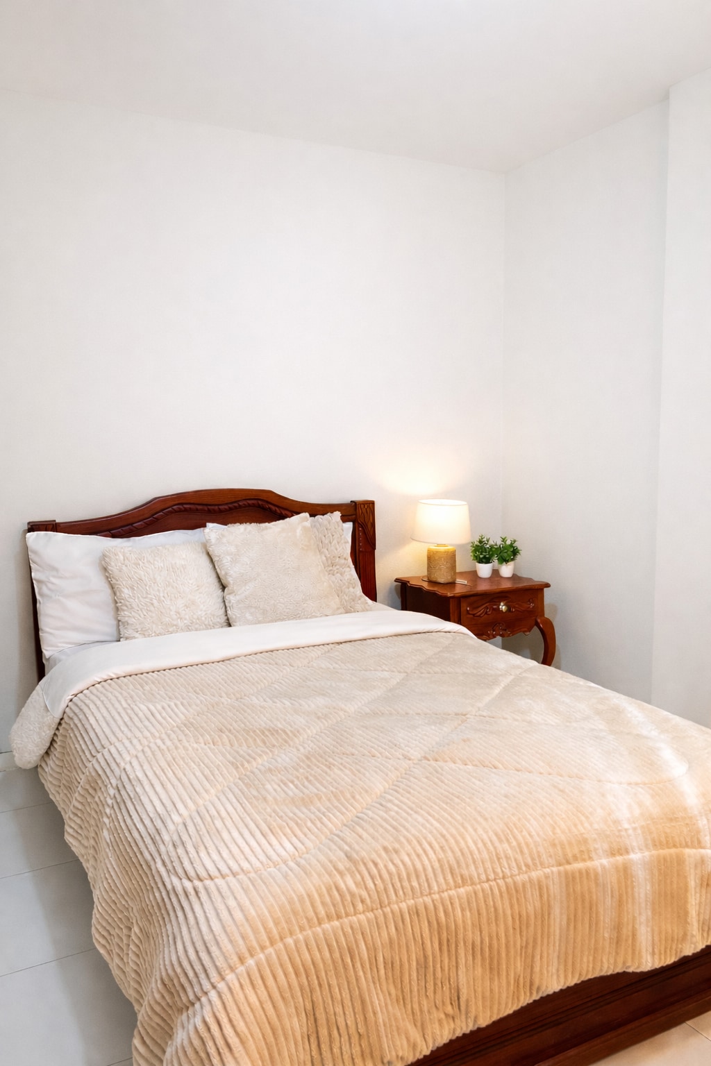 Apartament confortabil remodelat în centrul orașului Loja. Are 2 dormitoare (4 paturi), 1 baie, living, sufragerie și bucătărie echipată. Ideal pentru familii sau grupuri de până la 5 persoane. Include Wi-Fi, apă caldă, TV, spațiu de lucru și toate facilitățile. Poziție perfectă, aproape de magazine, restaurante și obiective turistice. Spațiu confortabil, curat și funcțional pentru a te bucura de șederea în oraș. La 5 minute de UTPL, poți ajunge acolo rapid, agil și sigur pentru evenimentele tale.