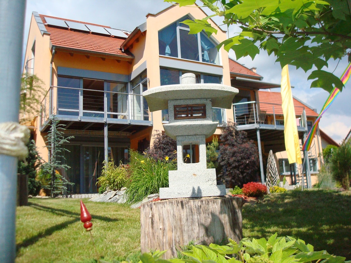 Welcome to our charming, more than 400-year-old villa — a former rectory beside a baroque church, peacefully set on a hill and surrounded by meadows and forests. This beautiful countryside retreat offers plenty of space for families, groups of friends, and special occasions. Enjoy a spacious garden, tastefully furnished rooms with historic furniture and artwork, and a warm, welcoming atmosphere — ideal for birthday celebrations, shared weekends, or relaxed days in nature.