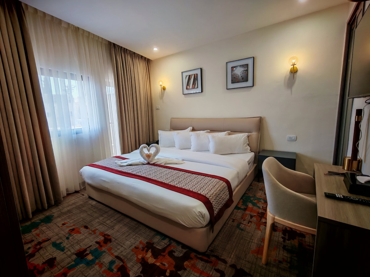 Enjoy your stay in the heart of Amman with a beautiful view of the historic Roman Theater (Amman) right from your room. You’ll be staying in a comfortable hotel room surrounded by the energy of downtown, where you can easily explore local markets, cafés, and cultural landmarks. Step outside and discover the charm of the city, then return to relax and enjoy your view of one of Amman’s most iconic sights. Your perfect base to experience the city like a local.