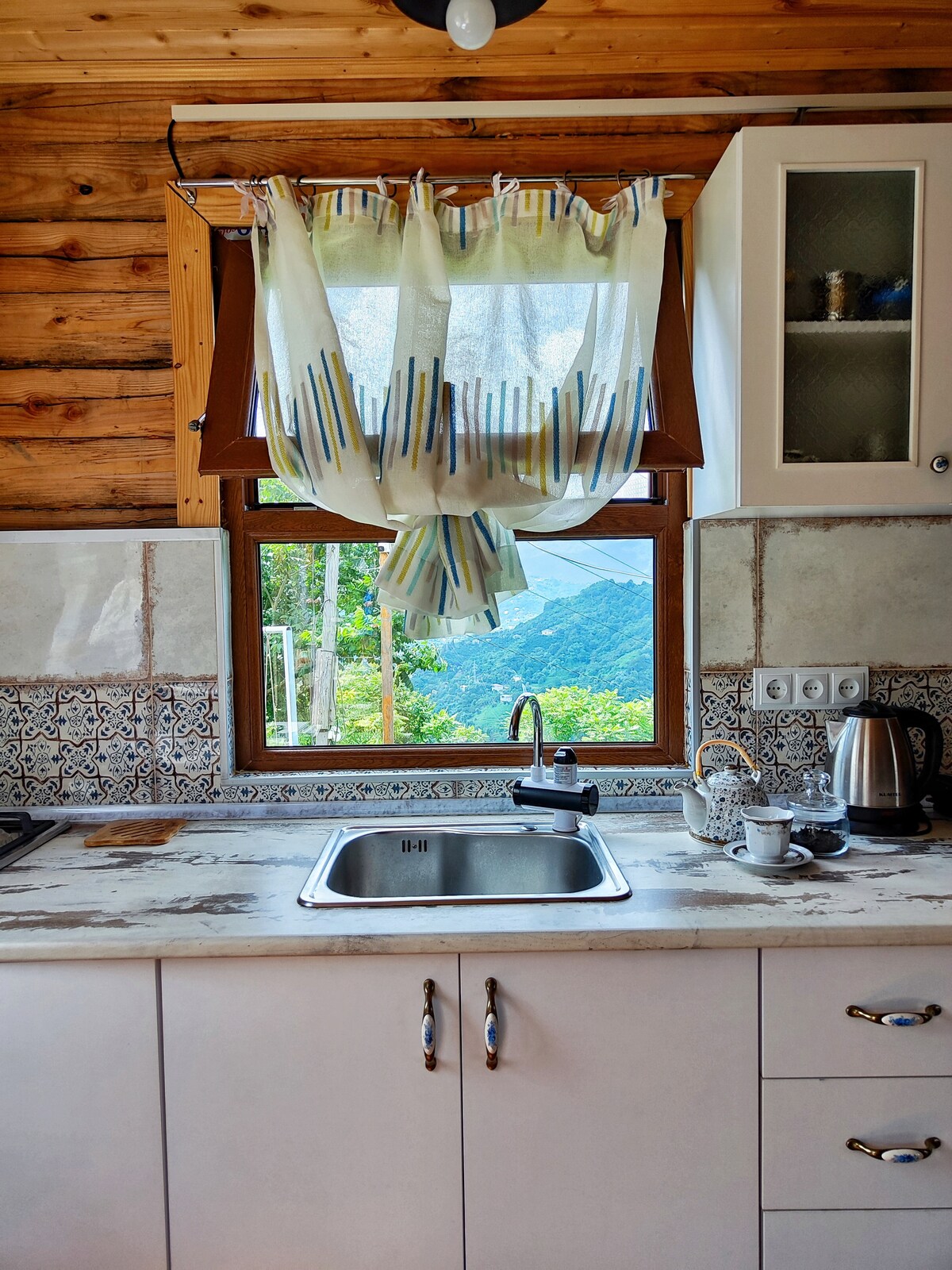 Cabană liniștită în formă de A lângă Batumi | Priveliști uimitoare 🌊🏞️ Evadează din oraș și relaxează-te la cabana noastră confortabilă în formă de A, la doar 12 km de Batumi, situată în satul Akhalsofeli, lângă Gonio-Sarpi Perfectă pentru familii sau grupuri mici — casa poate găzdui până la 5 oaspeți. Complet echipat cu tot ce aveți nevoie: • Pături calde, fier de călcat, uscător de păr, ustensile de bucătărie • Curte privată mare cu hamace, leagăne și o zonă de relaxare confortabilă acoperită, urmărind apusul soarelui în grădină, acesta este colțul tău liniștit de lângă Batumi 💫