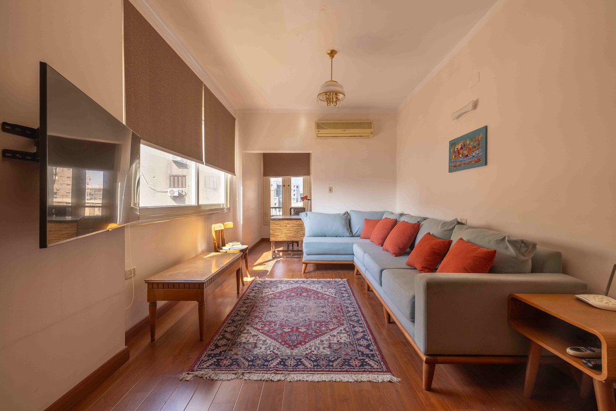 Bine ai venit la refugiul tău confortabil din Heliopolis, Cairo! Fermecătorul nostru apartament cu 2 dormitoare îmbină eleganța vintage și confortul modern. Locație excelentă: Heliopolis Central, la 20 de minute de aeroport, la 10 minute de Korba, la 15 minute de centrul orașului. Aer condiționat, living spațios, balcon , WiFi , complet echipat, Acces la lift, securitate non-stop, dotări în apropiere Fie că este vorba de o escapadă scurtă sau de o ședere prelungită, apartamentul nostru este baza perfectă pentru a explora Cairo. Rezervă acum pentru o vizită de neuitat!