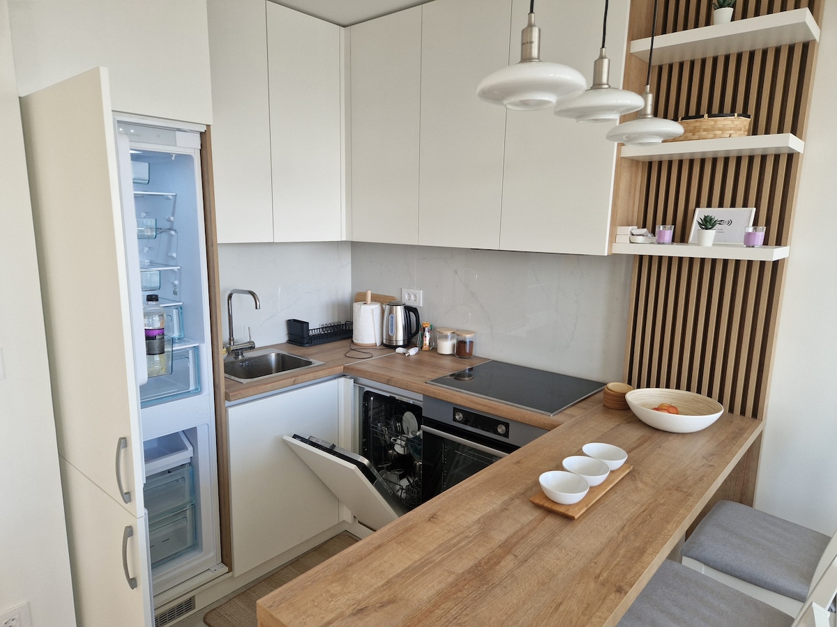 Bine ai venit în apartamentul spațios și modern cu Wi-Fi, parcare, aer condiționat, mult spațiu de locuit, birou cu monitor de 22", tastatură și șoarece situat central în inima orașului New Belgrad - cartier între Dunăre și Sava, cu o mulțime de baruri și restaurante excelente, centre comerciale și multe altele. Toate atracțiile și destinațiile din Belgrad se află fie la câțiva pași de aici, fie la o scurtă plimbare cu mașina/autobuzul (sub 20 de minute).
