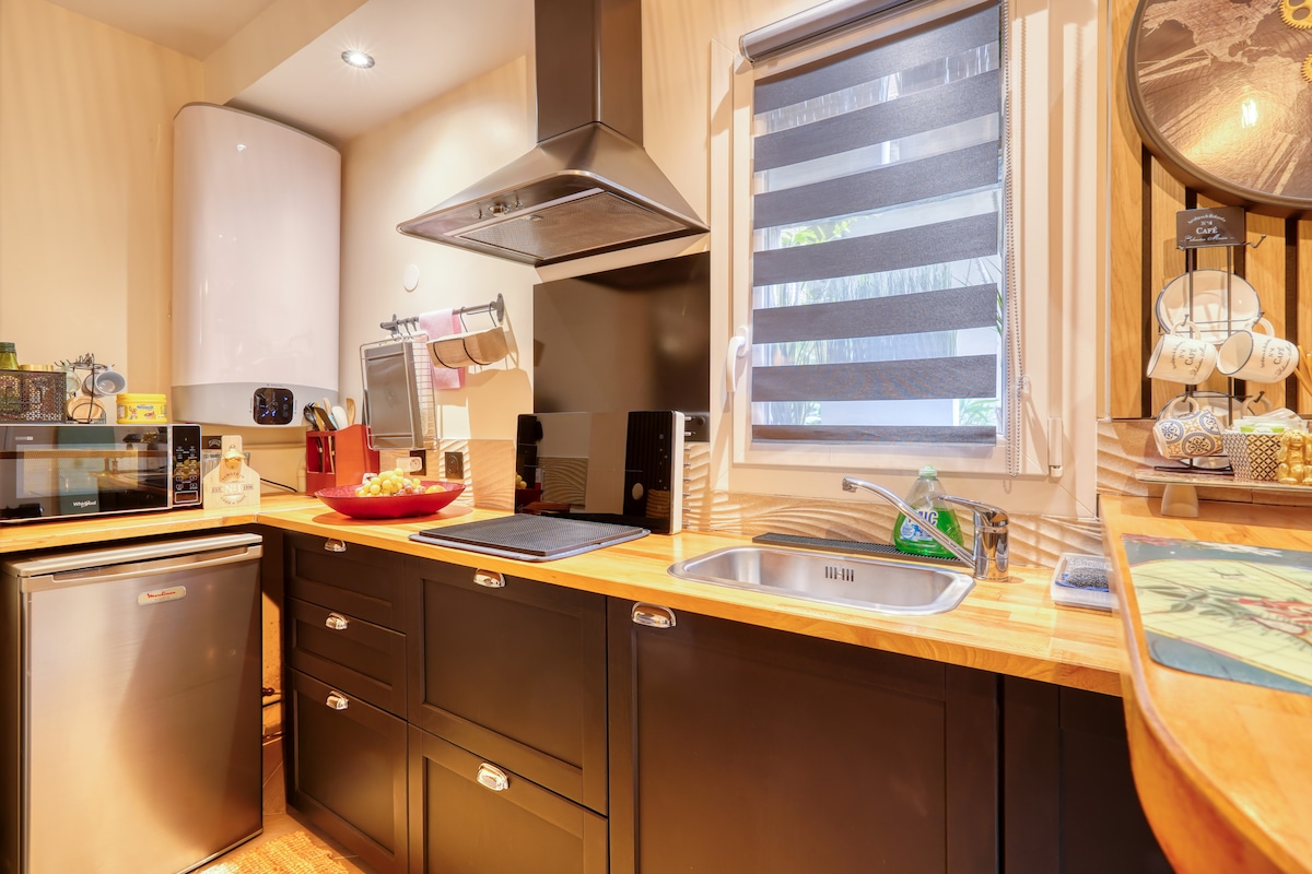 English, Italiano, algo de Español, 我们不会说中文, عربية A 7 mn à pied du Métro, situé à quelques pas du parc de la Villette, ce studio avec entrée indépendante par une cour commune vous offre calme, propreté et confort. Il est composé d’une chambre avec lit double, d’un coin cuisine et d’une douche. Micro-Onde, plaque chauffante, bouilloire et vaisselle vous permettent de cuisiner sur place.