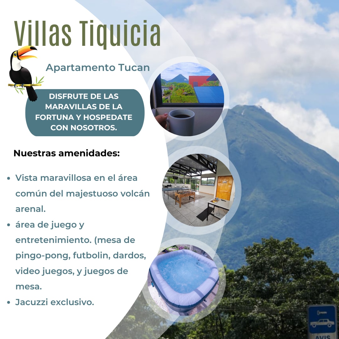 Bucură-te de o cazare complet echipată în mijlocul naturii, cu o vedere frumoasă la vulcanul Arenal, piscină, parcare și grădini spațioase, un loc perfect pentru relaxare în timpul vizitei la La Fortuna. Situat la doar 3 minute de centrul orașului și aproape de izvoare termale, parcuri turistice și restaurante. Suntem aici pentru a te ajuta să-ți planifici activitățile turistice, rezervările turistice și transportul, astfel încât să ai o experiență de neuitat în timpul vizitei.