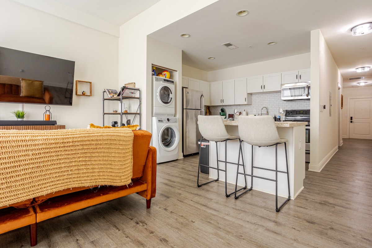 Bine ai venit în escapada ta perfectă! Această unitate elegantă cu 2 paturi și 2 băi are un pat matrimonial, TV inteligent și baie privată în apartamentul principal, plus un pat matrimonial confortabil în a doua cameră. Bucură-te de o a doua baie completă, TV inteligent în living, un balcon privat cu vedere minunată, bucătărie complet aprovizionată, spălătorie în unitate și un spațiu de locuit cald și primitor. Ideal pentru șederi de scurtă durată sau de lungă durată. Confort și confort te așteaptă!