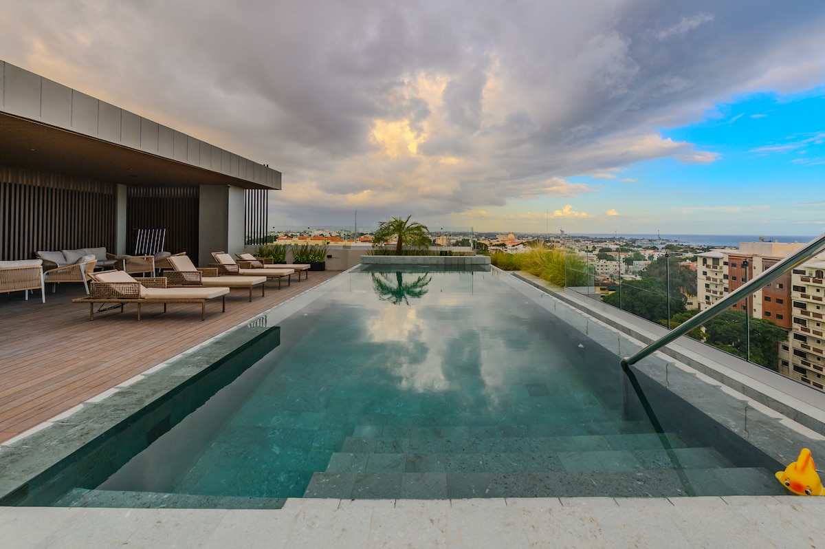 Your luxury oasis 13 minutes from the Colonial Zone! ✨ Relax in your private Jacuzzi or enjoy a BBQ on the exclusive terrace. Designed for rest and productivity: • 🛏 Premium King Bed. • ❄️ Total A/C and fast Wi-Fi (ideal Home Office). • 🍳 Full kitchen and Smart TV. • 🚗 Private and secure parking. Strategic location: close to supermarkets and restaurants. Perfect for digital nomads, couples or long stays. Book your experience today! 🥂