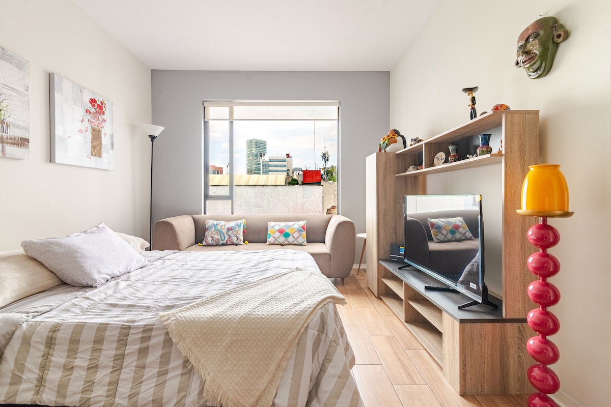 Apartament nou într-o clădire nouă, cu design eclectic și minimalism colorat, în inima cartierului Cuauhtémoc, la câteva străzi de Paseo de la Reforma și Ángel de la Independencia. Situat într-o zonă rezidențială liniștită, aproape de restaurante și cluburi de noapte excelente. Acest apartament a fost proiectat cu nevoile unui vizitator entuziast în minte și care are nevoie de lucru de acasă. Fiecare spațiu din această locuință este conceput pentru a genera un spațiu de liniște.