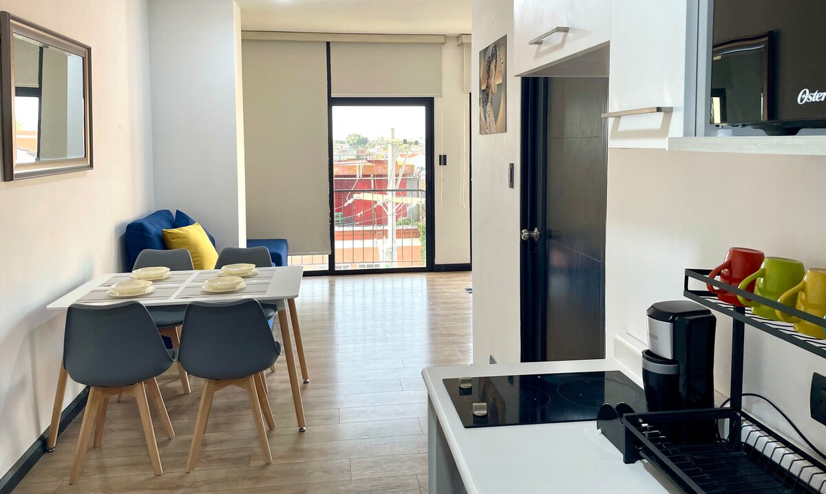 Jacuzzi în camera complet privată. Bucură-te de o experiență elegantă în această locuință din cea mai bună zonă a orașului, la doar câțiva metri de aeroport. Cu un balcon cu cadă cu hidromasaj, apartamentul nostru de lux are o priveliște uluitoare, unde vei vedea avioanele aterizând. Este o opțiune foarte bună pentru tine de a sta, are un stil modern, zonă de birou de acasă, nu te plictisești niciodată în timp ce lucrezi, știu!!