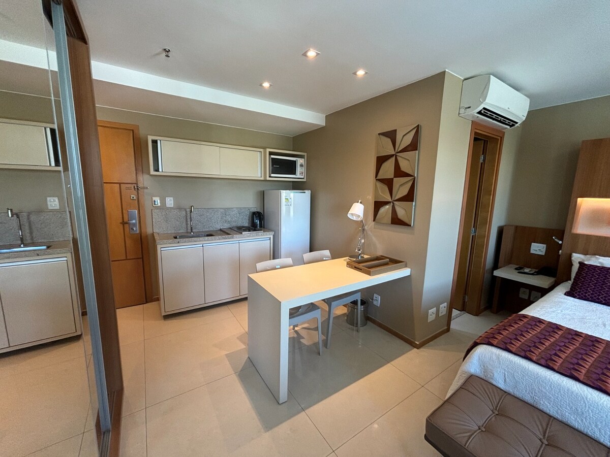Descoperă evadarea perfectă pentru muncă sau petrecere a timpului liber! Situat într-un mediu unic, aproape de toate facilitățile. Lângă centrele comerciale Casa Park și Park. La numai 5 km de stația de autobuz, la 9 km de aeroport și la 14 km de planul pilot. Structură cu 5 piscine, sală de gimnastică, saună. Centru de afaceri, recepție și restaurant non-stop. Baie dotată cu uscător de păr. Apto cu Wi-Fi foarte bun, lenjerie de pat și băi incluse. Rezervă acum și bucură-te de practicitate, confort și liniște!