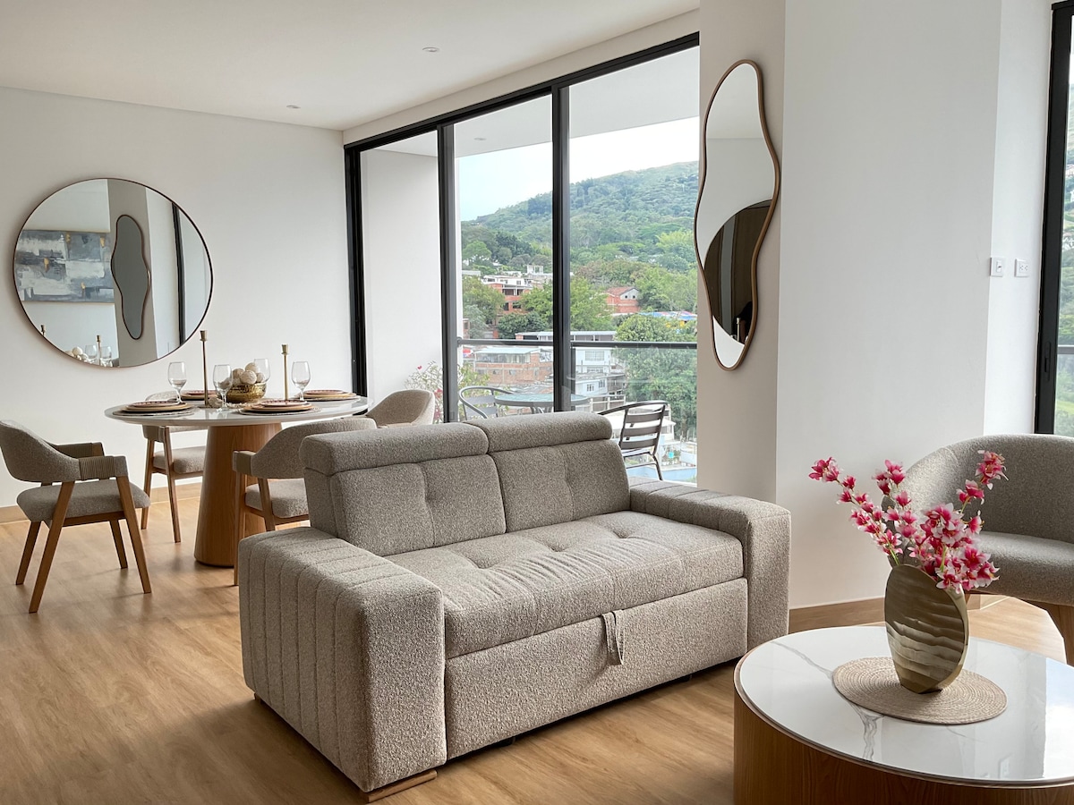 °Kick back and relax in this calm, stylish space.° Enjoy Cali in this 40m² Apartment in Santa Teresita neighborhood. Modern design offering comfort and security. AMENITIES: +Equipped kitchen +A/C +Smart TV +King bed +Hot water +Blackout curtains Ideal for couples, solo and business travelers.