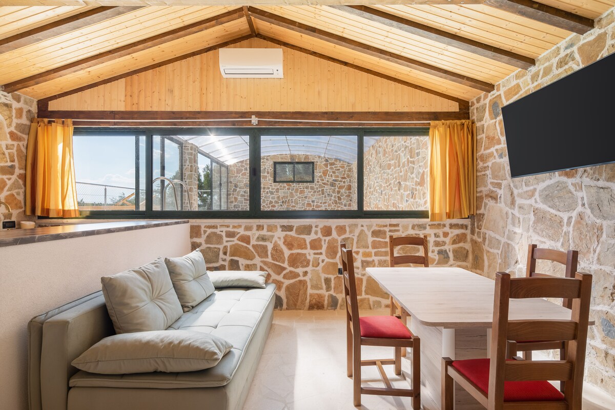 Căsuța noastră minunată este situată într-o livadă de măslini. Este înconjurat de un peisaj frumos al Adriaticii. Munții oferă multe plimbări și piste de biciclete. Plajele și marea sunt la 5 minute de mers cu mașina. De asemenea, principalele caracteristici ale casei sunt priveliștea uluitoare,pacea și izolarea. Spațiul are o senzație ruginită și simplă, astfel încât să te simți ca acasă.