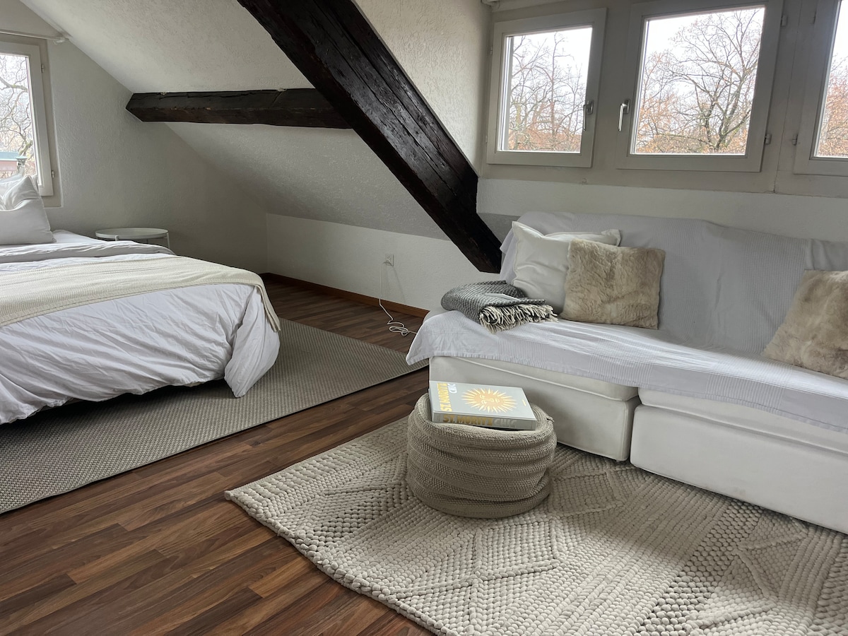 Mansardă fermecătoare și confortabilă în stil cabană, cu o priveliște uimitoare deasupra acoperișurilor din Zurich, în inima orașului, cu fler de oraș vechi - 100 m de strada comercială principală Bahnhofstrasse. Aproape că nu poți fi mai bine și mai central situat. Bucură-te de faptul că te afli în inima orașului Zurich și descoperă toate atracțiile principale ale orașului la câțiva pași și la doar 400 m de gara principală Zurich HB. Apartamentul are tot confortul și dotările pentru o ședere excelentă. Aștept cu nerăbdare să îți urez bun venit. 🙏🍀😊