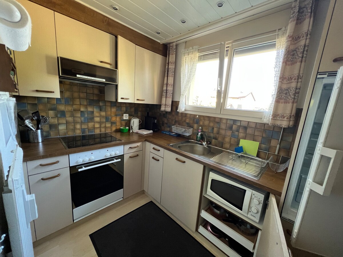 Gemütliche und helle 2-Zimmer-Wohnung mit Schwedenofen. In wenigen Minuten zu Fuss im Thermalbad Bad Zurzach. Nahrerhohlungsgebiet lädt zu Radtouren oder Spaziergängen ein. Sehr gute Anbindung an Bus. Sicherer Parkplatz neben Haus. Eigener Balkon. Großzügiges Bad mit eigener WM und Trockner. Voll eingerichtete Küche mit Nespressomaschine, Kaffeekapseln, Wasserkocher usw. WLAN und großer Smart-TV mit NETFLIX. Bico-Matraz-Doppelbett sorgt für erholsamen Schlaf. Garten und Liegen zur Mitbenutzung.