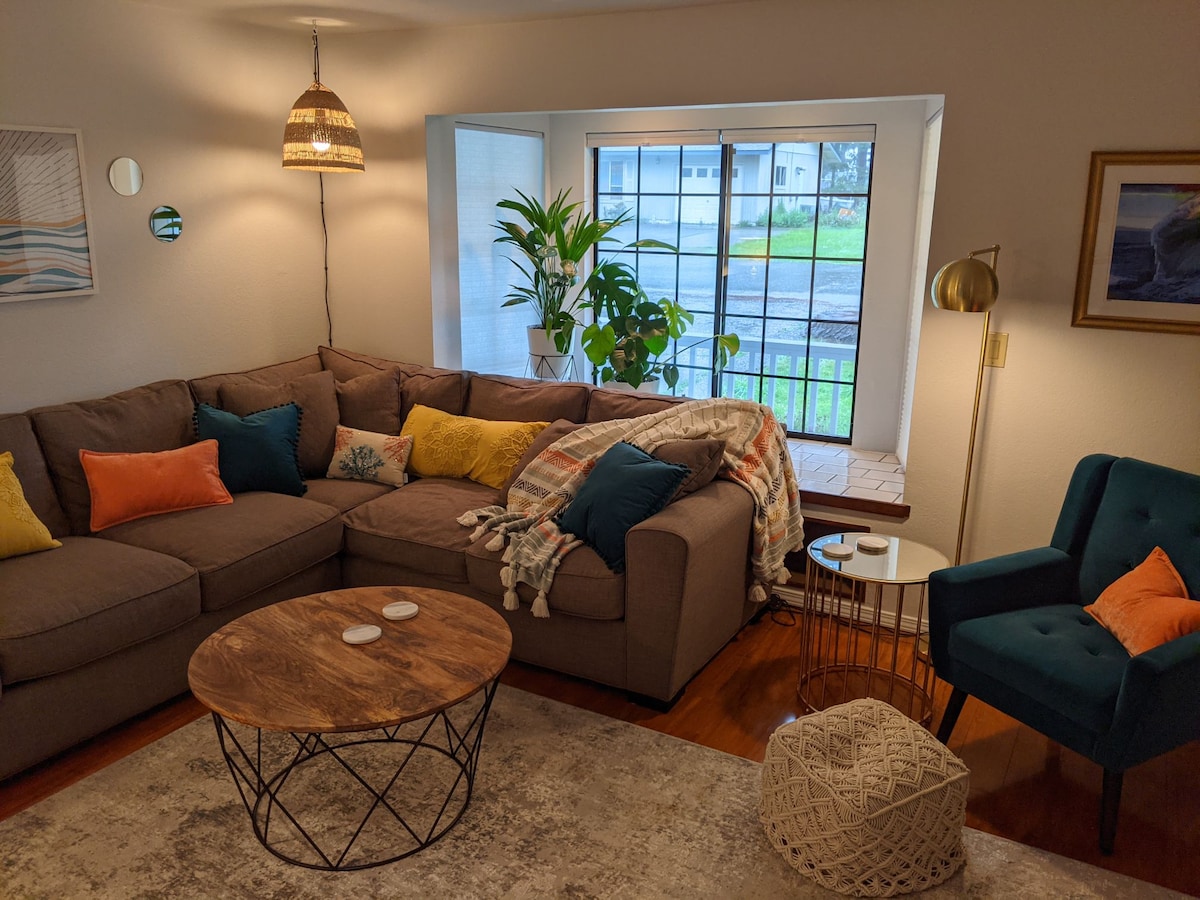 Vino să te bucuri de această casă frumoasă cu 3 dormitoare și 2 băi în inima orașului Brookings! La câțiva pași de centrul orașului și de superbul parc Azalea! Situat într-un cartier liniștit, la doar câteva minute de plajă și port! Locuința noastră confortabilă, potrivită pentru familii, are o bucătărie complet echipată, trei televizoare inteligente, Netflix, cablu, WiFi, grătar, șemineu electric și o terasă spațioasă pentru divertisment în aer liber, cu o curte complet împrejmuită. Găsește tot ce ai nevoie pentru a te bucura de următoarea aventură pe Coasta Oregonului!